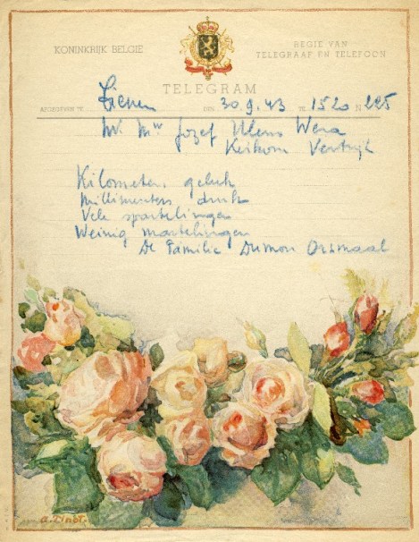 Telegrammen verstuurd naar het Hof ten Male ter gelegenheid van het huwelijk van Jozef Ulens en Maria Wera op 30 september 1943
